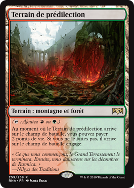 | Rules | (: Add or .) As Stomping Ground enters the battlefield, you may pay 2 life. If you don't, it enters the battlefield tapped. |