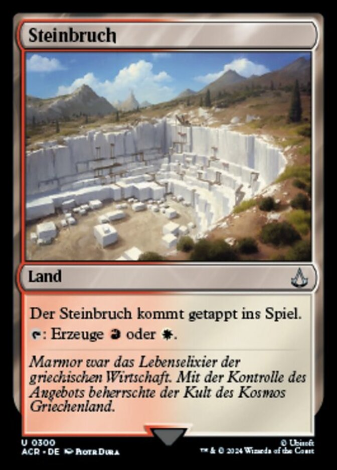 | Rules | Stone Quarry enters the battlefield tapped. : Add or . |