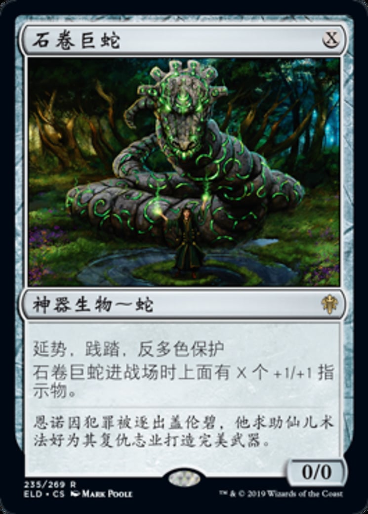 | Rules | Reach, trample, protection from multicolored Stonecoil Serpent enters the battlefield with X +1/+1 counters on it. |