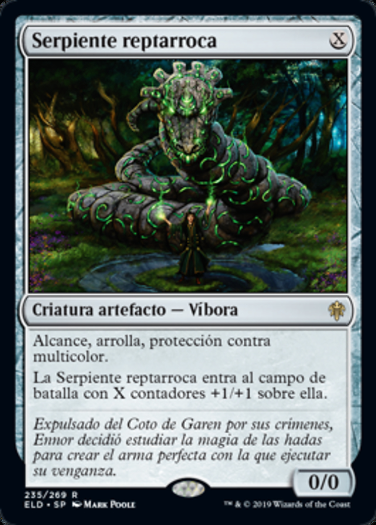 | Rules | Reach, trample, protection from multicolored Stonecoil Serpent enters the battlefield with X +1/+1 counters on it. |