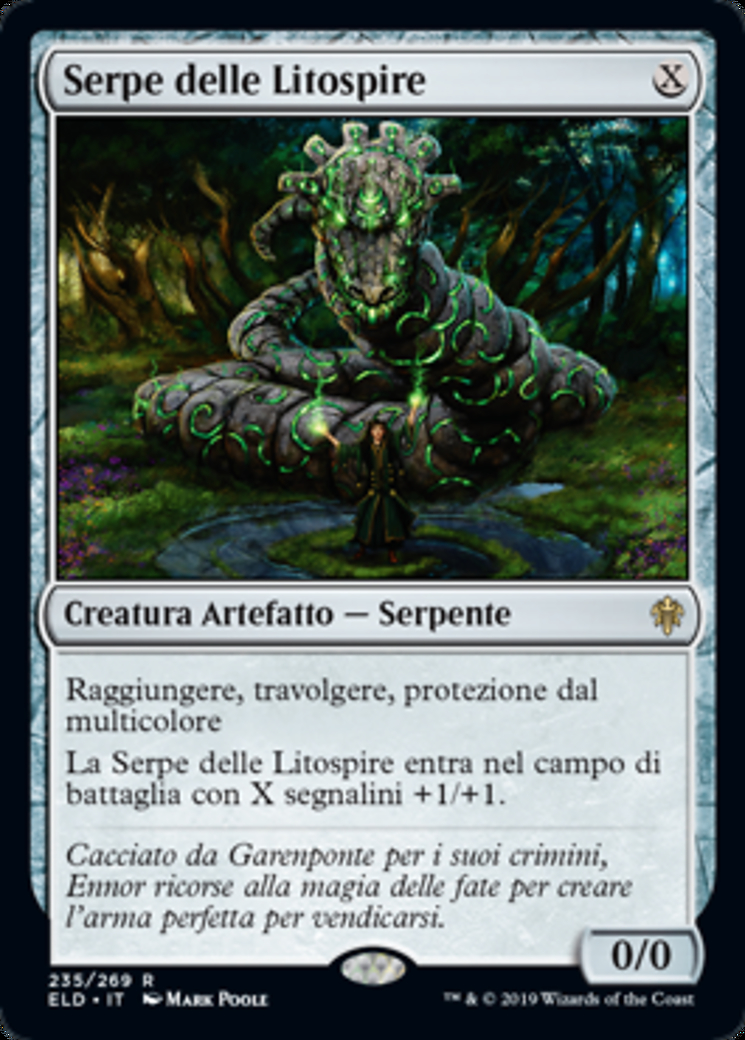 | Rules | Reach, trample, protection from multicolored Stonecoil Serpent enters the battlefield with X +1/+1 counters on it. |