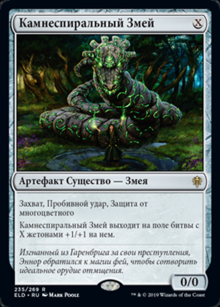 | Rules | Reach, trample, protection from multicolored Stonecoil Serpent enters the battlefield with X +1/+1 counters on it. |