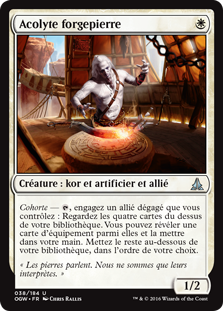 | Rules | Cohort — , Tap an untapped Ally you control: Look at the top four cards of your library. You may reveal an Equipment card from among them and put it into your hand. Put the rest on the bottom of your library in any order. |