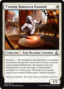 | Rules | Cohort — , Tap an untapped Ally you control: Look at the top four cards of your library. You may reveal an Equipment card from among them and put it into your hand. Put the rest on the bottom of your library in any order. |
