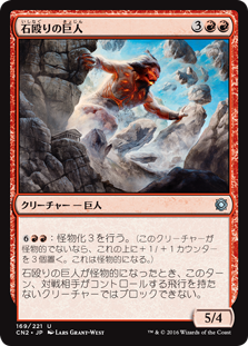 | Rules | : Monstrosity 3. (If this creature isn't monstrous, put three +1/+1 counters on it and it becomes monstrous.) When Stoneshock Giant becomes monstrous, creatures without flying your opponents control can't block this turn. |