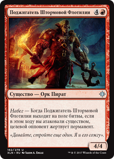 | Rules | Raid — When Storm Fleet Arsonist enters the battlefield, if you attacked this turn, target opponent sacrifices a permanent. |