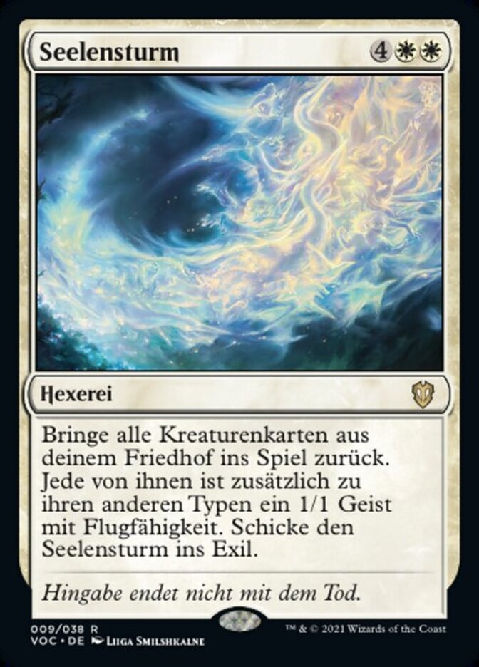 | Rules | Return all creature cards from your graveyard to the battlefield. Each of them is a 1/1 Spirit with flying in addition to its other types. Exile Storm of Souls. |