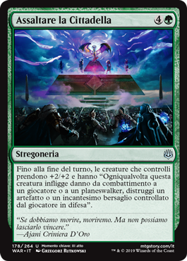 | Rules | Until end of turn, creatures you control get +2/+2 and gain "Whenever this creature deals combat damage to a player or planeswalker, destroy target artifact or enchantment defending player controls." |