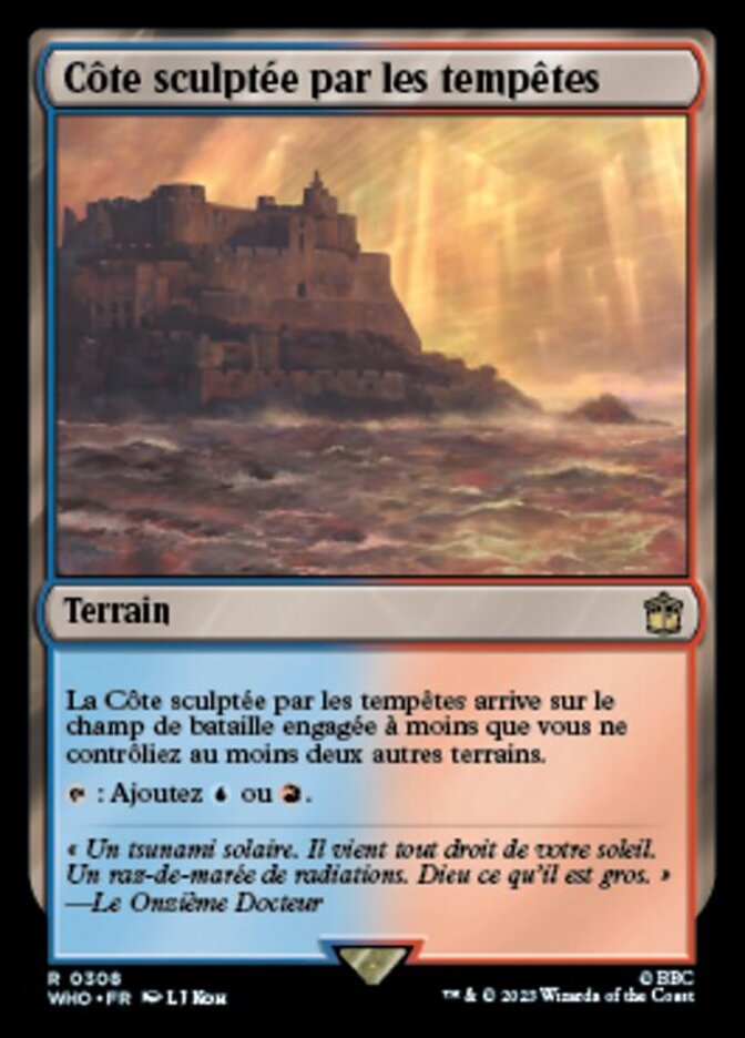| Rules | Stormcarved Coast enters the battlefield tapped unless you control two or more other lands. : Add or . |