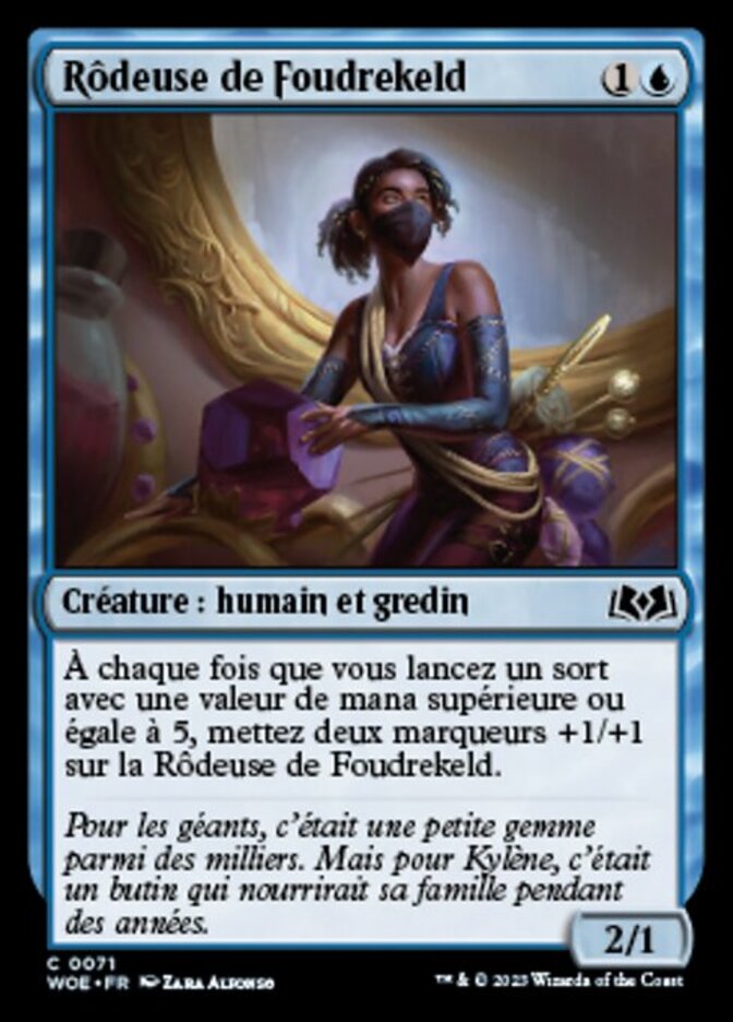 | Rules | Whenever you cast a spell with mana value 5 or greater, put two +1/+1 counters on Stormkeld Prowler. |