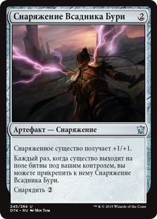 | Rules | Equipped creature gets +1/+1. Whenever a creature enters the battlefield under your control, you may attach Stormrider Rig to it. Equip |