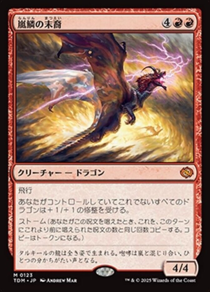 | Rules | Flying Other Dragons you control get +1/+1. Storm (When you cast this spell, copy it for each spell cast before it this turn. Copies become tokens.) |