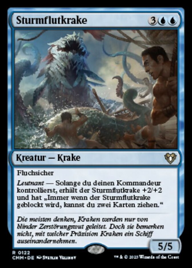 | Rules | Hexproof Lieutenant — As long as you control your commander, Stormsurge Kraken gets +2/+2 and has "Whenever Stormsurge Kraken becomes blocked, you may draw two cards." |