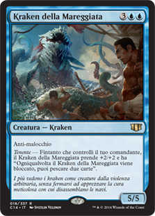 | Rules | Hexproof Lieutenant — As long as you control your commander, Stormsurge Kraken gets +2/+2 and has "Whenever Stormsurge Kraken becomes blocked, you may draw two cards." |