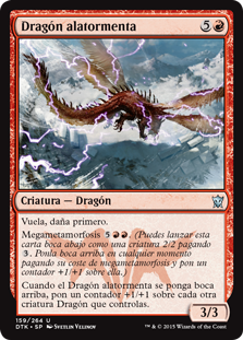 | Rules | Flying, first strike Megamorph (You may cast this card face down as a 2/2 creature for . Turn it face up any time for its megamorph cost and put a +1/+1 counter on it.) When Stormwing Dragon is turned face up, put a +1/+1 counter on each other Dragon creature you control. |