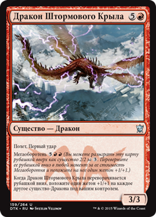 | Rules | Flying, first strike Megamorph (You may cast this card face down as a 2/2 creature for . Turn it face up any time for its megamorph cost and put a +1/+1 counter on it.) When Stormwing Dragon is turned face up, put a +1/+1 counter on each other Dragon creature you control. |