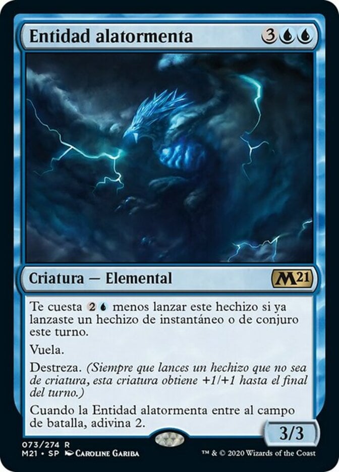 | Rules | This spell costs less to cast if you've cast an instant or sorcery spell this turn. Flying Prowess (Whenever you cast a noncreature spell, this creature gets +1/+1 until end of turn.) When Stormwing Entity enters the battlefield, scry 2. |