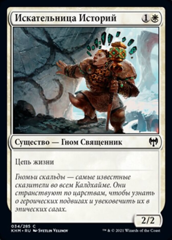 | Flavor | Dwarven skalds are the most renowned storytellers in all of Kaldheim. They travel across the realms, seeking out heroic deeds and chronicling them in epic sagas. |