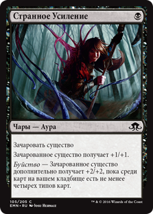 | Rules | Enchant creature Enchanted creature gets +1/+1. Delirium — Enchanted creature gets an additional +2/+2 as long as there are four or more card types among cards in your graveyard. |
