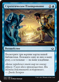 | Rules | Look at the top three cards of your library. Put one of them into your hand and the rest into your graveyard. |