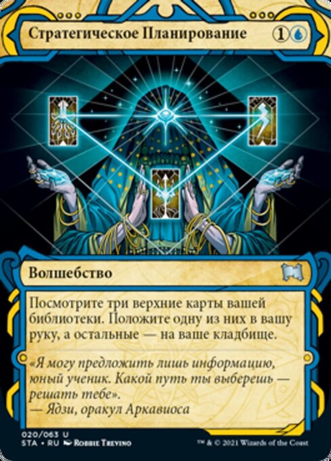 | Rules | Look at the top three cards of your library. Put one of them into your hand and the rest into your graveyard. |