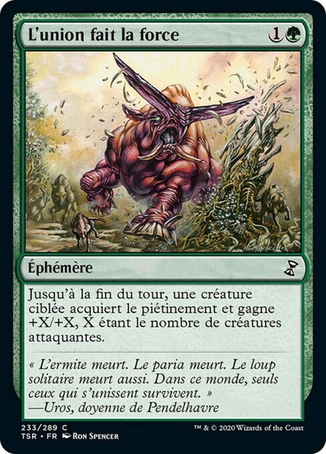 | Rules | Until end of turn, target creature gains trample and gets +X/+X, where X is the number of attacking creatures. |