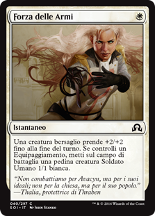 | Rules | Target creature gets +2/+2 until end of turn. If you control an Equipment, create a 1/1 white Human Soldier creature token. |