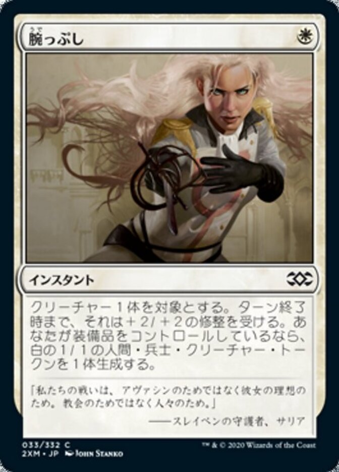 | Rules | Target creature gets +2/+2 until end of turn. If you control an Equipment, create a 1/1 white Human Soldier creature token. |