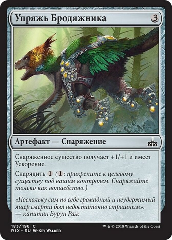 | Rules | Equipped creature gets +1/+1 and has haste. Equip (: Attach to target creature you control. Equip only as a sorcery.) |