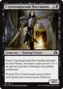 | Rules | When Stromkirk Mentor enters the battlefield, put a +1/+1 counter on another target Vampire you control. |