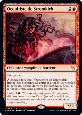 | Rules | Trample Whenever Stromkirk Occultist deals combat damage to a player, exile the top card of your library. Until end of turn, you may play that card. Madness (If you discard this card, discard it into exile. When you do, cast it for its madness cost or put it into your graveyard.) |