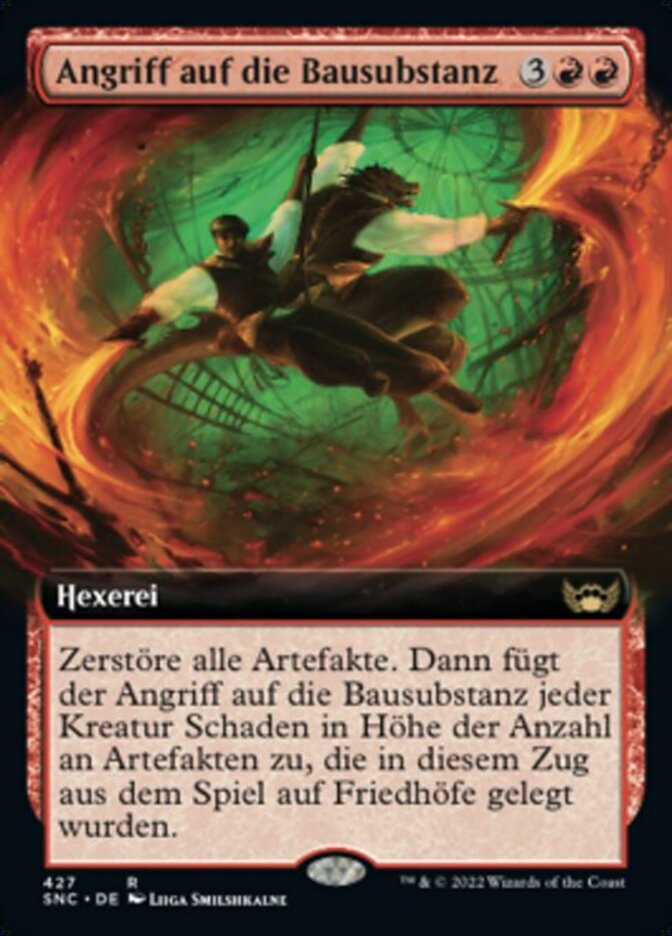 | Rules | Destroy all artifacts, then Structural Assault deals damage to each creature equal to the number of artifacts that were put into graveyards from the battlefield this turn. |
