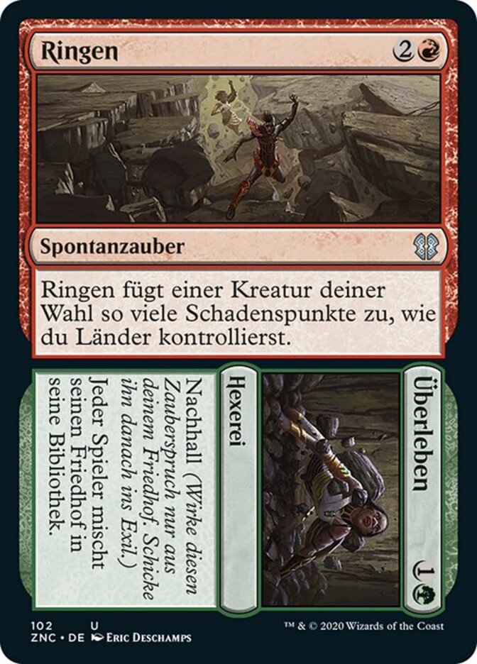 | Rules | Struggle deals damage to target creature equal to the number of lands you control. // Aftermath (Cast this spell only from your graveyard. Then exile it.) Each player shuffles their graveyard into their library. |