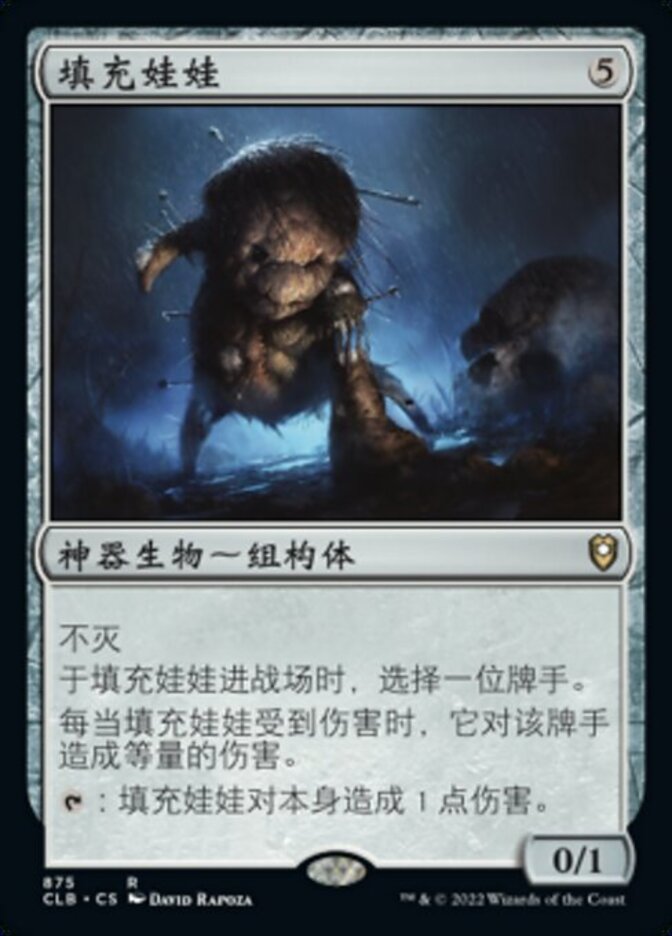 | Rules | Indestructible As Stuffy Doll enters the battlefield, choose a player. Whenever Stuffy Doll is dealt damage, it deals that much damage to the chosen player. : Stuffy Doll deals 1 damage to itself. |