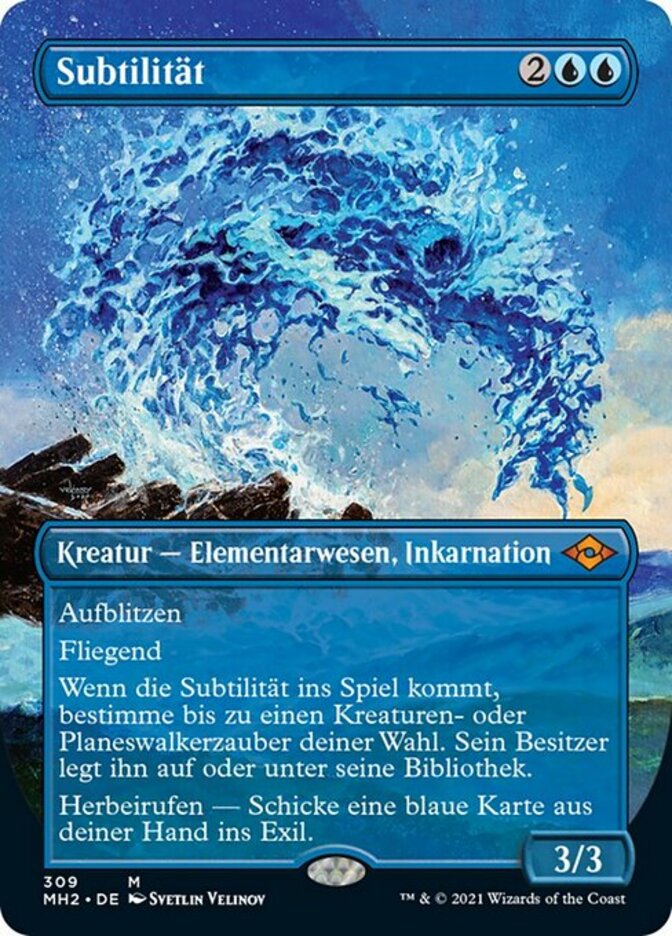 | Rules | Flash Flying When Subtlety enters the battlefield, choose up to one target creature spell or planeswalker spell. Its owner puts it on the top or bottom of their library. Evoke—Exile a blue card from your hand. |
