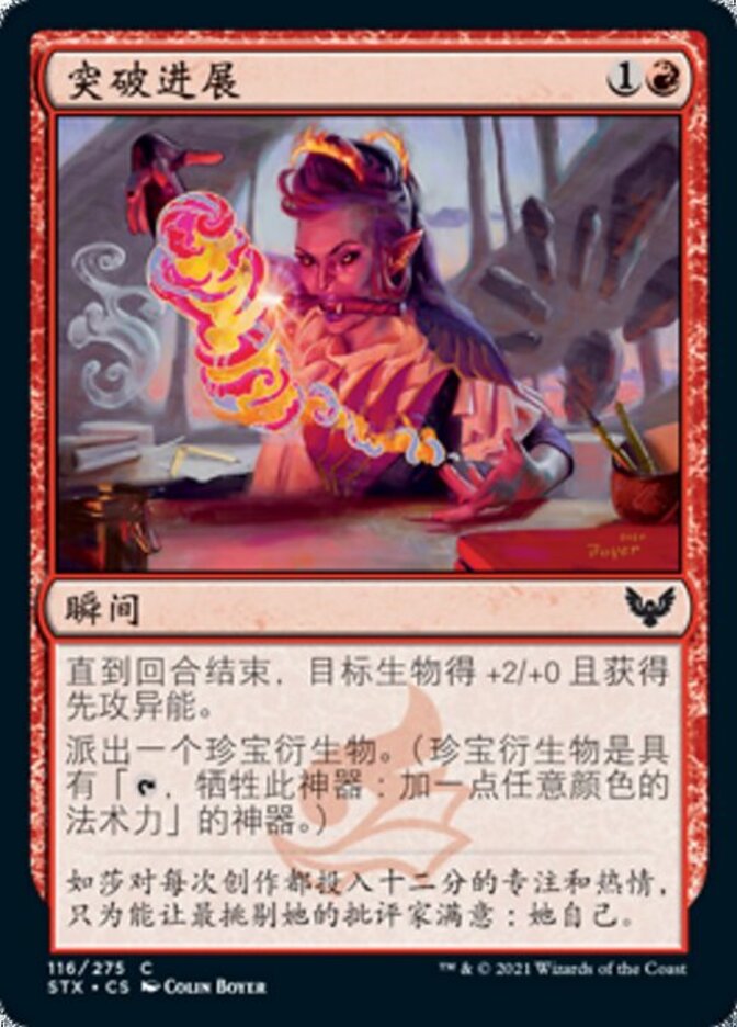 | Rules | Target creature gets +2/+0 and gains first strike until end of turn. Create a Treasure token. (It's an artifact with ", Sacrifice this artifact: Add one mana of any color.") |