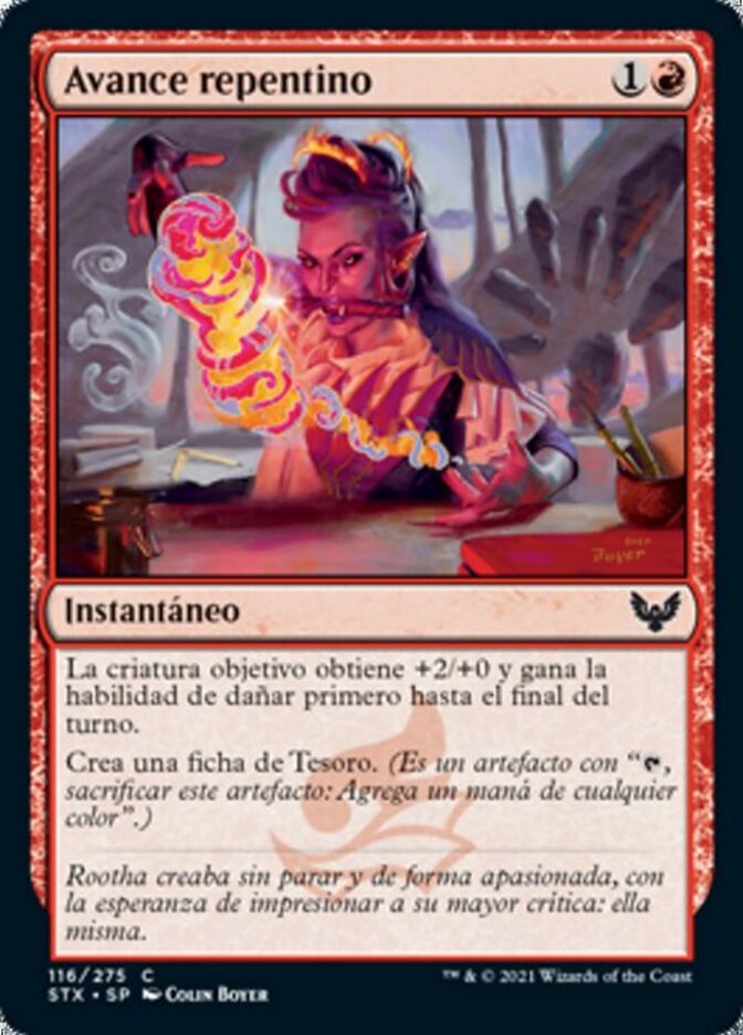 | Rules | Target creature gets +2/+0 and gains first strike until end of turn. Create a Treasure token. (It's an artifact with ", Sacrifice this artifact: Add one mana of any color.") |