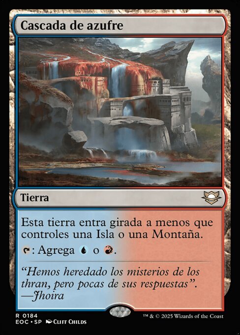 | Rules | Sulfur Falls enters the battlefield tapped unless you control an Island or a Mountain. : Add or . |