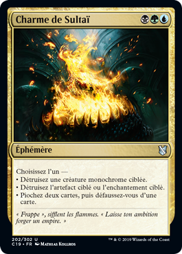 | Rules | Choose one — • Destroy target monocolored creature. • Destroy target artifact or enchantment. • Draw two cards, then discard a card. |