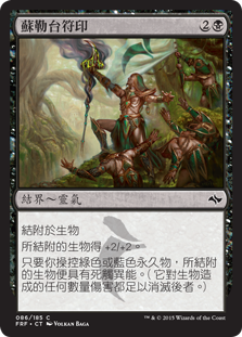 | Rules | Enchant creature Enchanted creature gets +2/+2. Enchanted creature has deathtouch as long as you control a green or blue permanent. (Any amount of damage it deals to a creature is enough to destroy it.) |