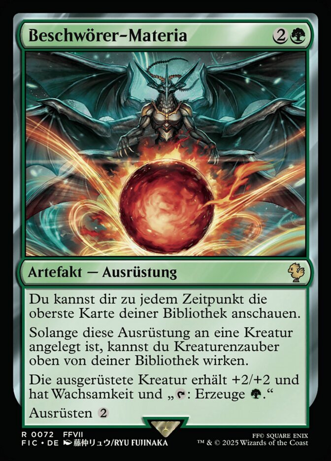 | Rules | You may look at the top card of your library any time. As long as this Equipment is attached to a creature, you may cast creature spells from the top of your library. Equipped creature gets +2/+2 and has vigilance and ": Add ." Equip |