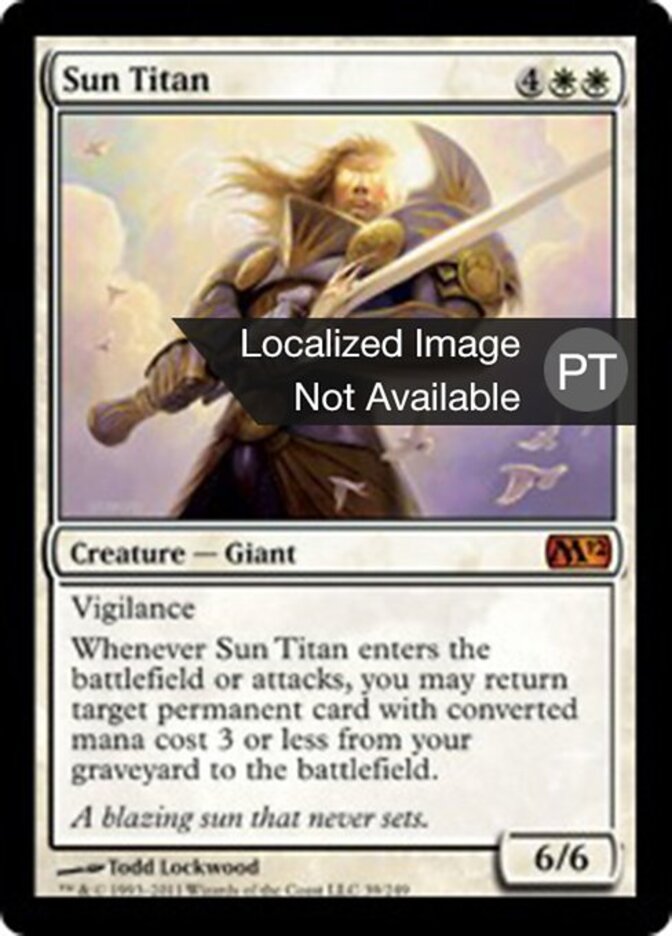 | Rules | Vigilance Whenever Sun Titan enters the battlefield or attacks, you may return target permanent card with mana value 3 or less from your graveyard to the battlefield. |