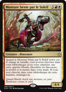 | Rules | When Sun-Blessed Mount enters the battlefield, you may search your library and/or graveyard for a card named Huatli, Dinosaur Knight, reveal it, then put it into your hand. If you searched your library this way, shuffle. |