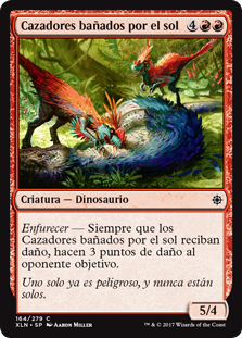 | Rules | Enrage — Whenever Sun-Crowned Hunters is dealt damage, it deals 3 damage to target opponent or planeswalker. |