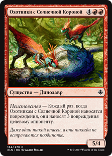 Rules Enrage — Whenever Sun-Crowned Hunters is dealt damage, it deals 3 damage to target opponent or planeswalker.