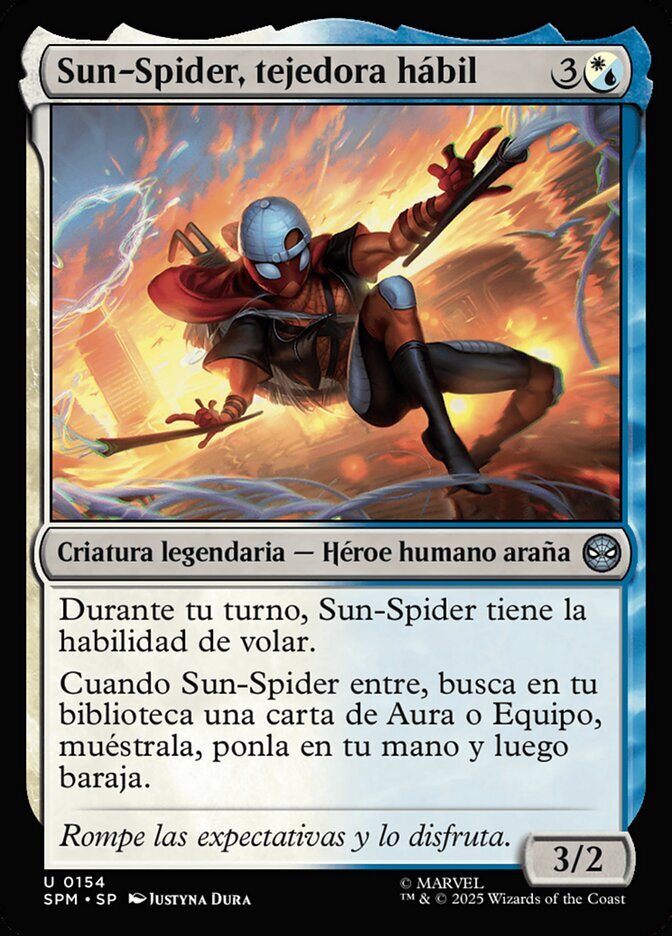 | Rules | During your turn, Sun-Spider has flying. When Sun-Spider enters, search your library for an Aura or Equipment card, reveal it, put it into your hand, then shuffle. |
