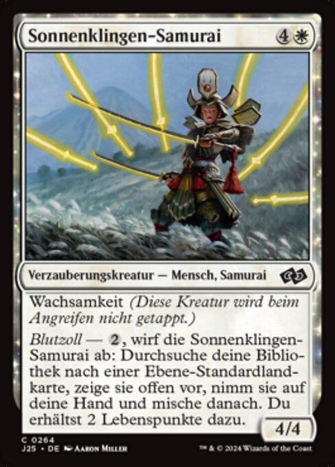 | Rules | Vigilance Channel — , Discard Sunblade Samurai: Search your library for a basic Plains card, reveal it, put it into your hand, then shuffle. You gain 2 life. |
