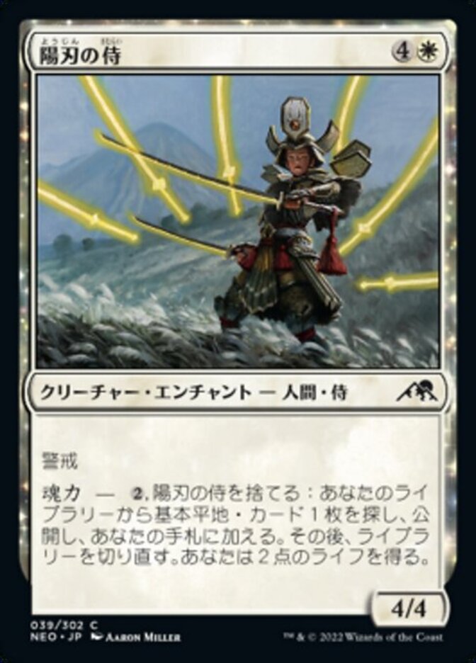 Channel — , Discard Sunblade Samurai: Search your library for a basic Plains card, reveal it, put it into your hand, then shuffle. You gain 2 life.
