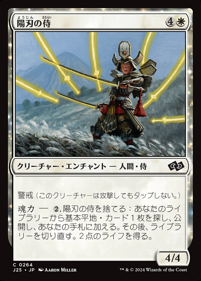 | Rules | Vigilance Channel — , Discard Sunblade Samurai: Search your library for a basic Plains card, reveal it, put it into your hand, then shuffle. You gain 2 life. |