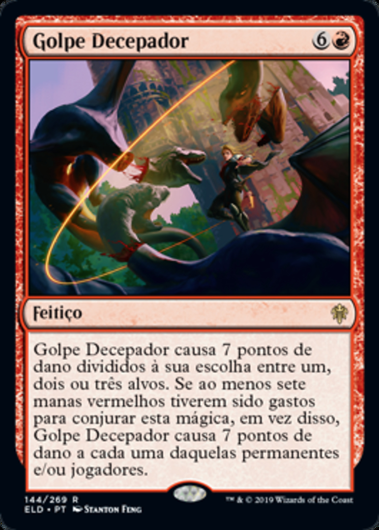 | Rules | Sundering Stroke deals 7 damage divided as you choose among one, two, or three targets. If at least seven red mana was spent to cast this spell, instead Sundering Stroke deals 7 damage to each of those permanents and/or players. |